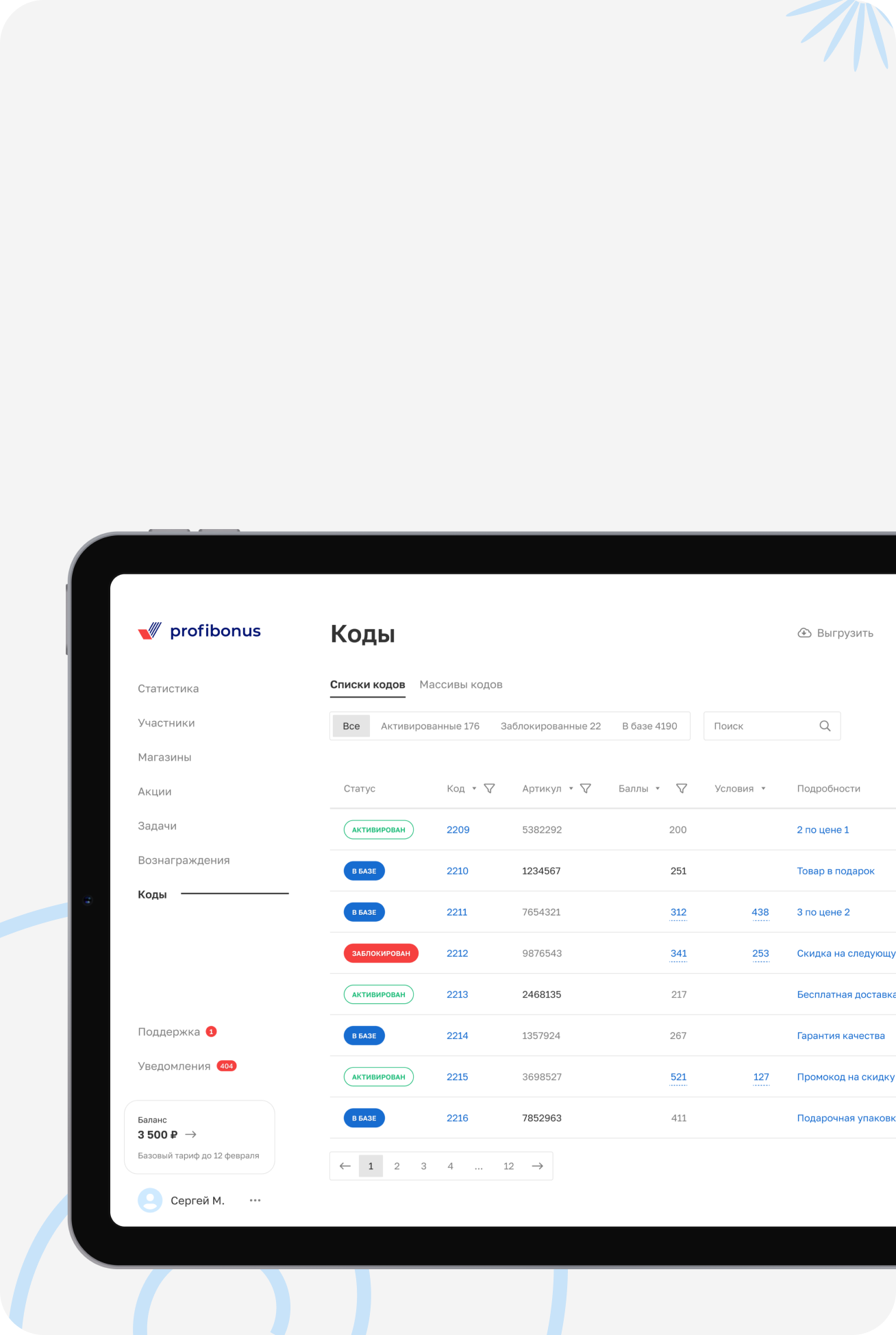 Продавцы активируют коды с участвующей в Profibonus продукции, выполняют условия акций и персональных задач, зарабатывая на этом баллы.